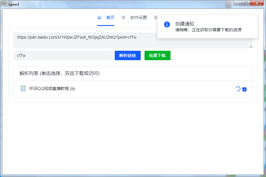 下载安装好后 ,打开软件,输入百度网盘链接即可开始批量下载,非常方便。